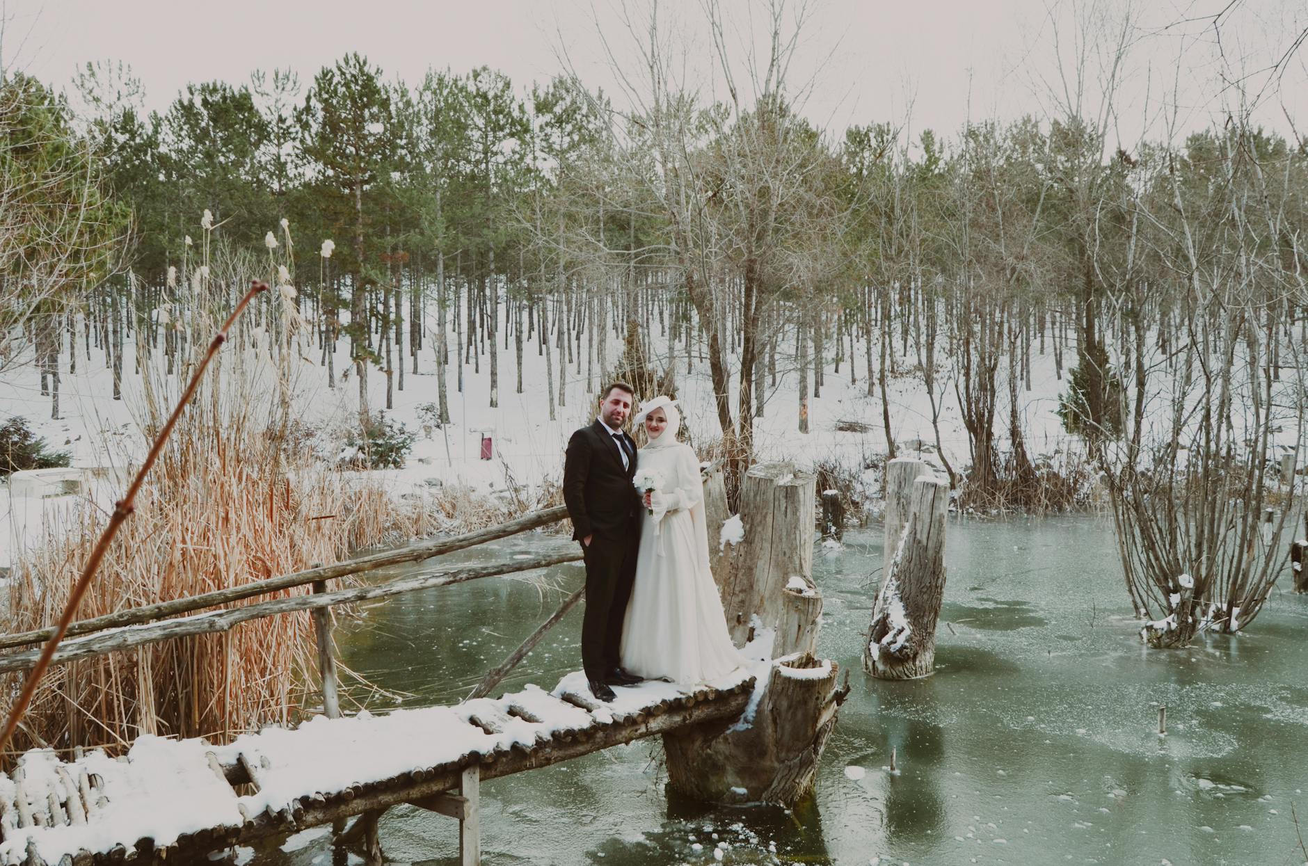 - czapki – raczej na drogę niż na samą ceremonię, ale zdjęcia z Panną Młodą w białym berecie lub dzianinowej czapce i Panem Młodym w eleganckim płaszczu potrafią być bardzo „filmowe”,
